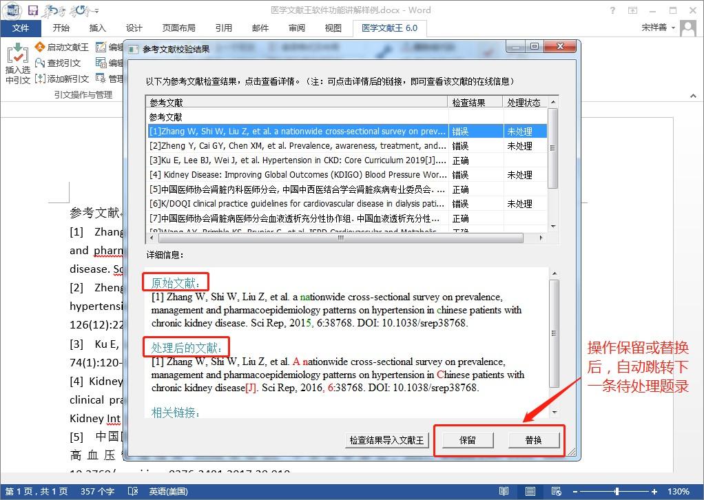 医学文献王是面向医学生、医学工作者的文献管理工具,能为您保存和管理整个职业生涯的文献资料。医学文献王V6.0版本提供了参考文献的检校服务,说明如下: